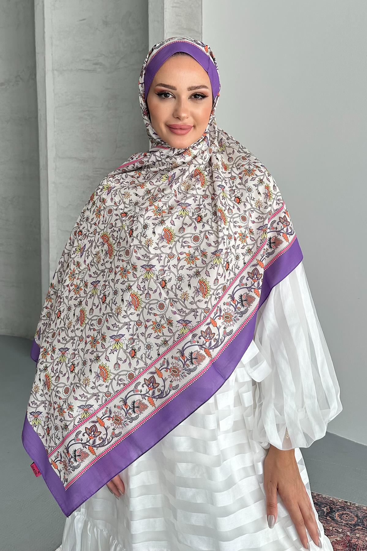 Otantik Etnik Desenli Lila Renk Soft Pamuk Şal (otantik-lila)