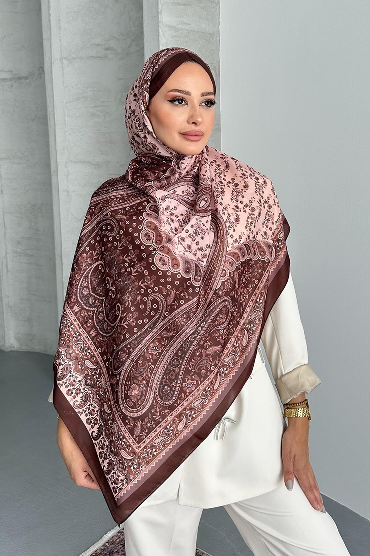 Colorful Paisley Etnik Desenli Kahverengi Soft Pamuk Şal (colorful-kahve)