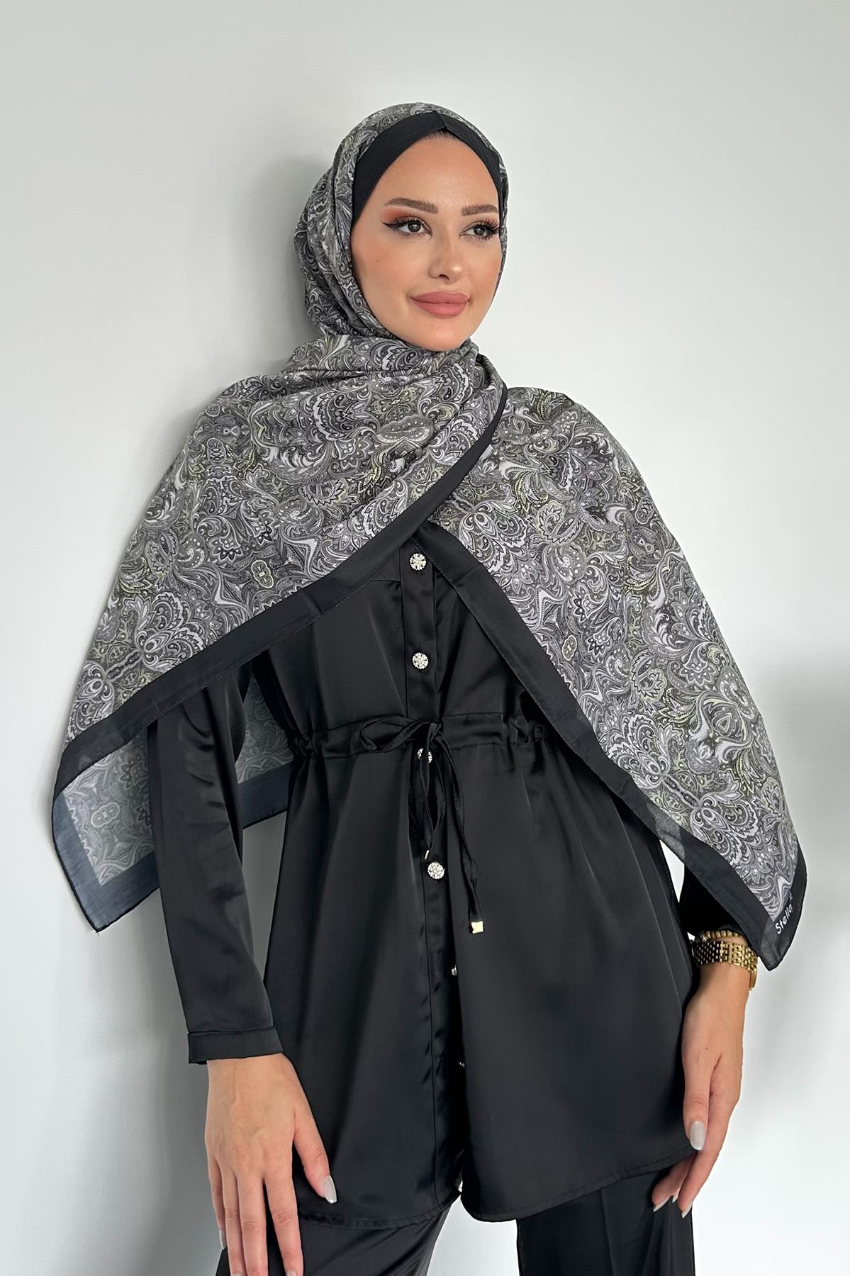 Etnik Retro Desen Siyah Renk Pamuk Soft Şal (bordürlü-siyah)