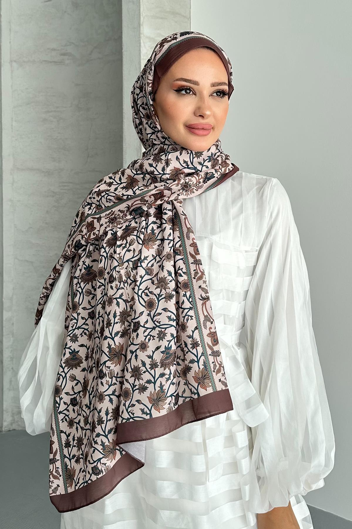 Otantik Etnik Kahverengi Desenli Soft Pamuk Şal (otantik-kahve)
