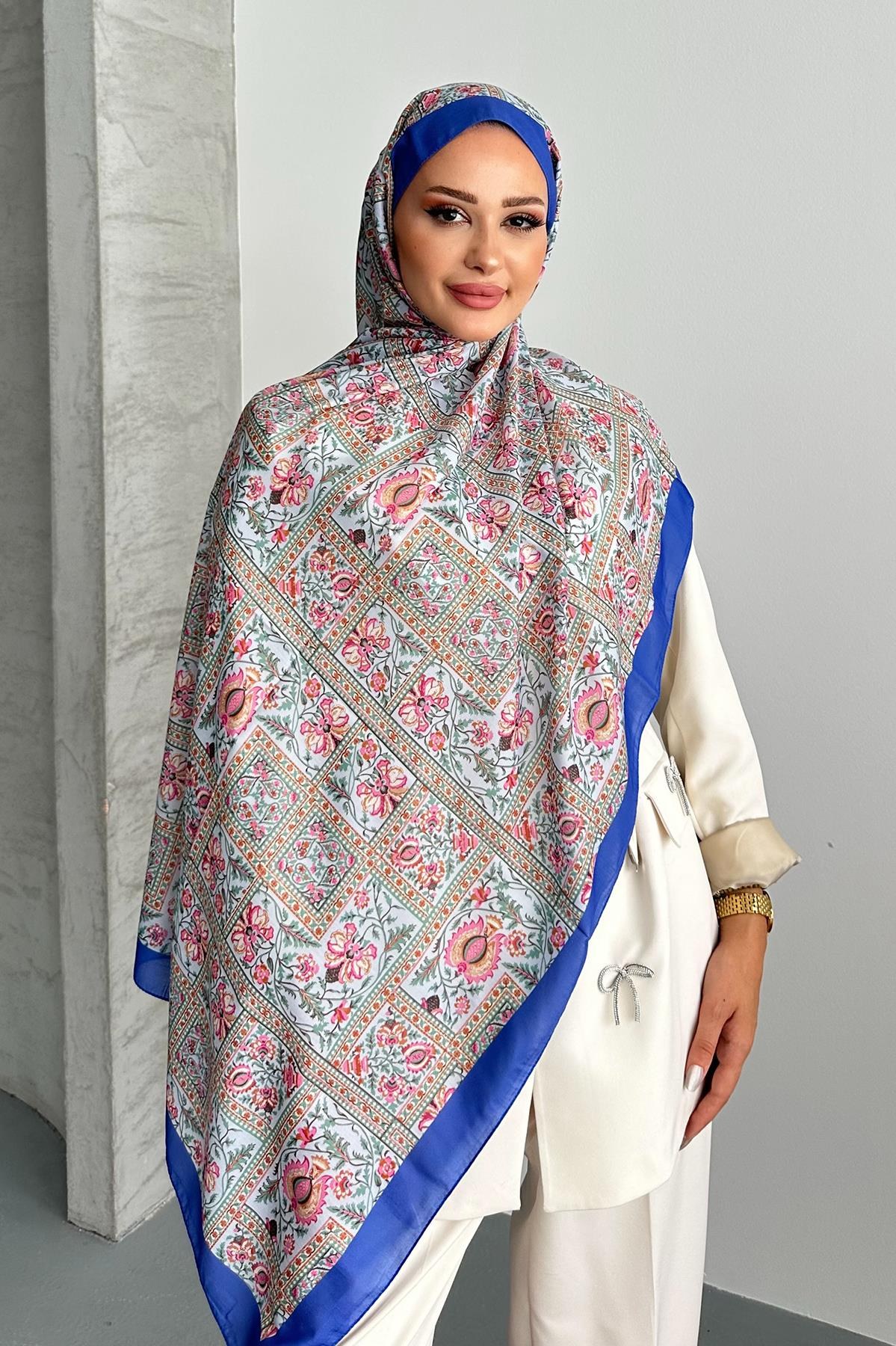 Retro Etnik Desen Mavi Renk Soft Pamuk Şal